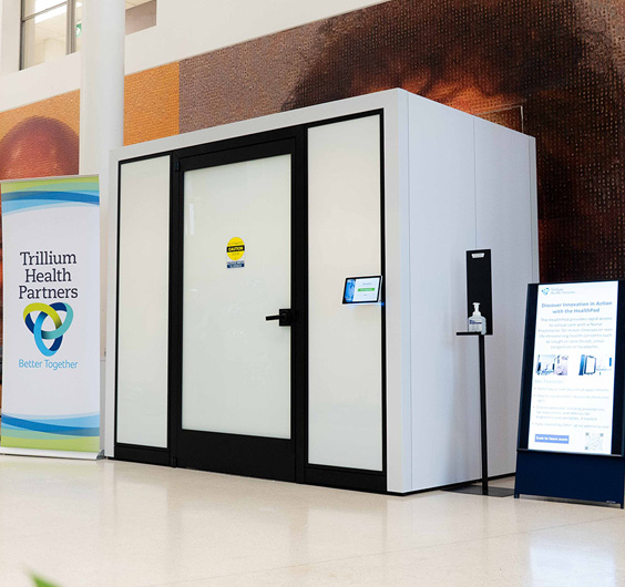 The HealthPod is a one-person medical clinic that provides rapid access to virtual care with a Nurse Practitioner for urgent, non-life-threatening concerns. Each HealthPod is equipped with easy-to-use medical devices — such as a blood pressure cuff, heart rate monitor, ECG, and oxygen monitor— making it simple to complete essential health checks as part of a thorough virtual visit.