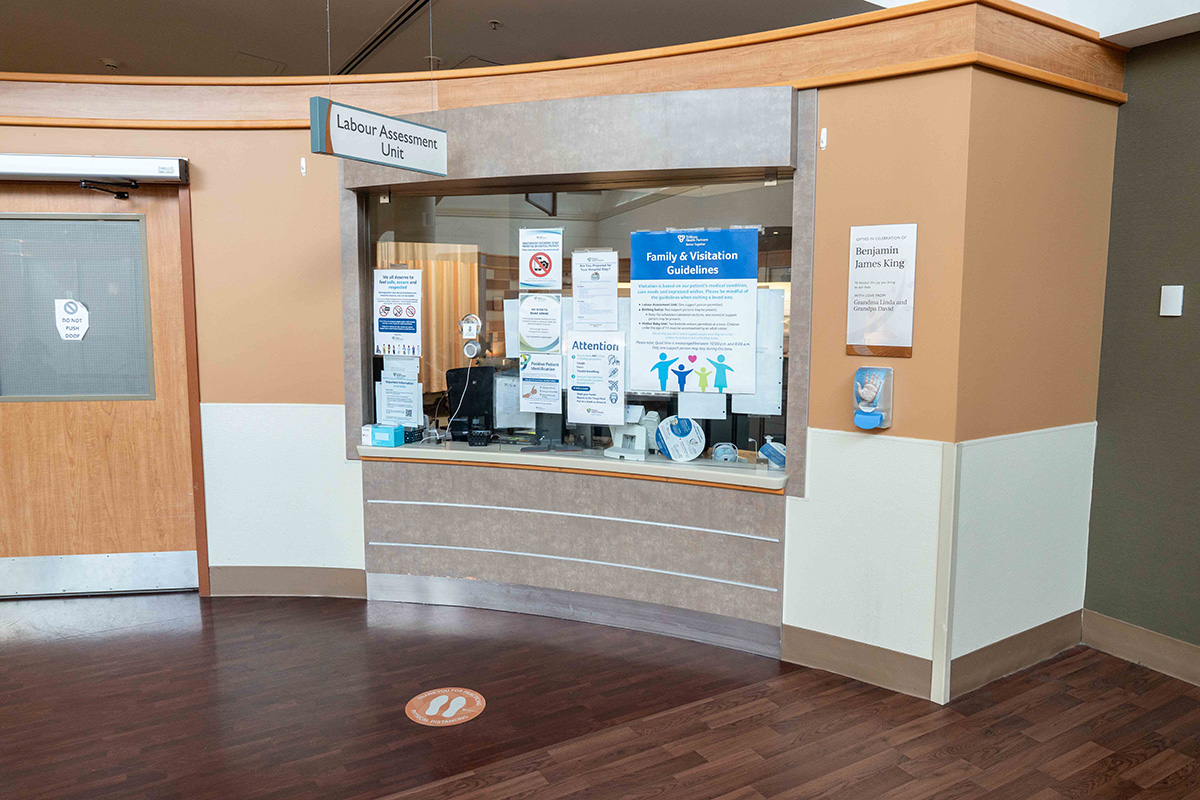Enter the Hospital from the H block (Women’s & Children’s Entrance). Take the stairs or SUN elevator to the third floor. The Labour Assessment Unit is at the top of the stairs, to the right of the elevator.